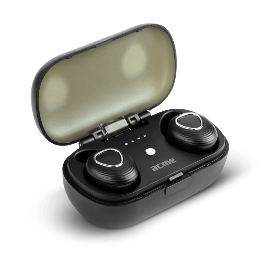 Musik im Freiflug: „True Wireless“ In-Ear-Kopfhörer von ACME inklusive Lade-Case mit Powerbank und intuitiver Bedienung für 49,99 EUR