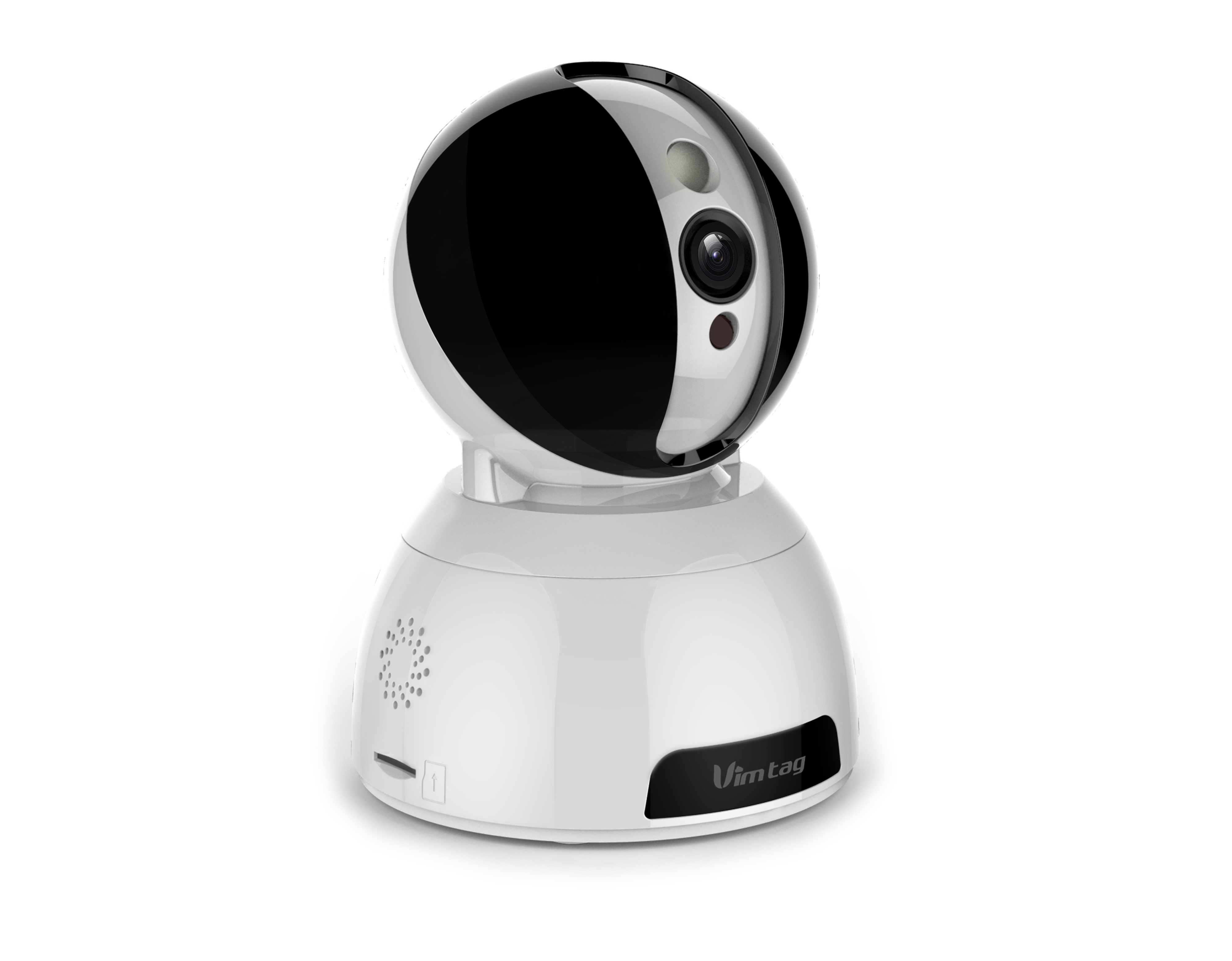 Ferngesteuert kann die Kamera horizontal um 350° und vertikal um 100° gedreht werden. Es entstehen keine toten Winkel und auch große Räume können eingesehen werden – optimal, um sonntags nachzusehen, ob im Geschäft alles in Ordnung ist. Videoaufnahmen zeichnet die Kamera mit 720p auf. Der 1/4 Zoll CMOS-Bildsensor und die Anti-Reflektionslinse liefern scharfe Foto- und Videoaufnahmen. Diese können auf der eingelegten Micro SD-Karte gespeichert werden. Alternativ steht mit der optional erhältlichen „Vimtag Cloud Storage Box“, auch eine Cloud als Speicherort zur Verfügung. Nimmt der Einbrecher das Gerät also mit oder zerstört sie, ist sein Video bereits in der Cloud gesichert. Dabei ermöglicht eine 1024-bit-Verschlüsselung eine hohe Datensicherheit. Die Kamera kann wahlweise über WLAN oder LAN mit dem Heimnetzwerk verbunden werden. Auf Wunsch nimmt die smarte Cam auch Fotos auf. Im Einsatz als Babyphone, wird das erste Lächeln so direkt eingefangen.