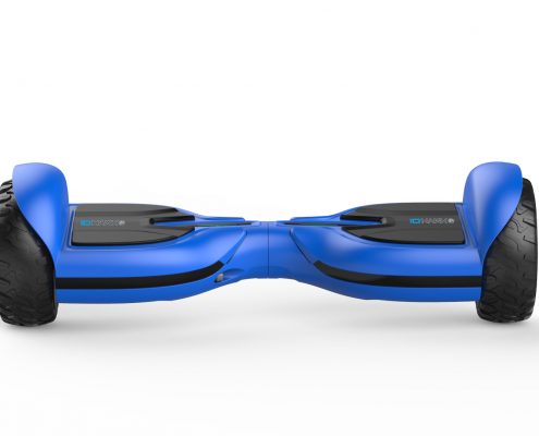 Raus in die Natur geht es mit dem neuen „IO HAWK TWO Rugged LED“. Das Hoverboard zeigt sich flexibel, wenn es um den zu befahrenden Untergrund geht. Unbefestigte Waldwege oder Rasenflächen sind kein Problem für den Cruiser aus dem Hause IO HAWK. Mit seinen extrabreiten, 6,5 Zoll großen Profilreifen aus Vollgummi bietet er auch auf nassem Boden guten Grip. Jede Menge Fahrspaß bringt er natürlich auch auf ebenen Flächen und ist dabei ein ganz besonderer Hingucker. An den Reifen befinden sich seitlich jeweils fünf blaue LEDs, die sich beim Fahren mitdrehen. Zusätzlich ist das neue IO HAWK Hoverboard mit zwei LED-Streifen auf der Vorderseite ausgestattet.