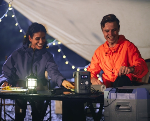 Mit 288 Wh (90.000 mAh) Kapazität, drei USB-C-Ports, einem USB-A-Anschluss sowie einer 12-Volt-Buchse liefert der Explorer 300D bis zu 300 Watt Strom. Statt eines klassischen Wechselrichters setzt das kompakte Modell vollständig auf Gleichstrom. Dadurch arbeitet die kleine Powerstation nicht nur ohne Umwandlungsverluste besonders effizient und leichtgewichtig, sondern deckt auch ein breites Spektrum aktueller Mobil- und Arbeitsgeräte ab, die intern ohnehin mit Gleichstrom betrieben werden – von Smartphones und Tablets über mobile Router und Kameras bis hin zu Laptops. Die gesamte Elektronik kommt ohne Lüfter aus und arbeitet entsprechend geräuschlos.