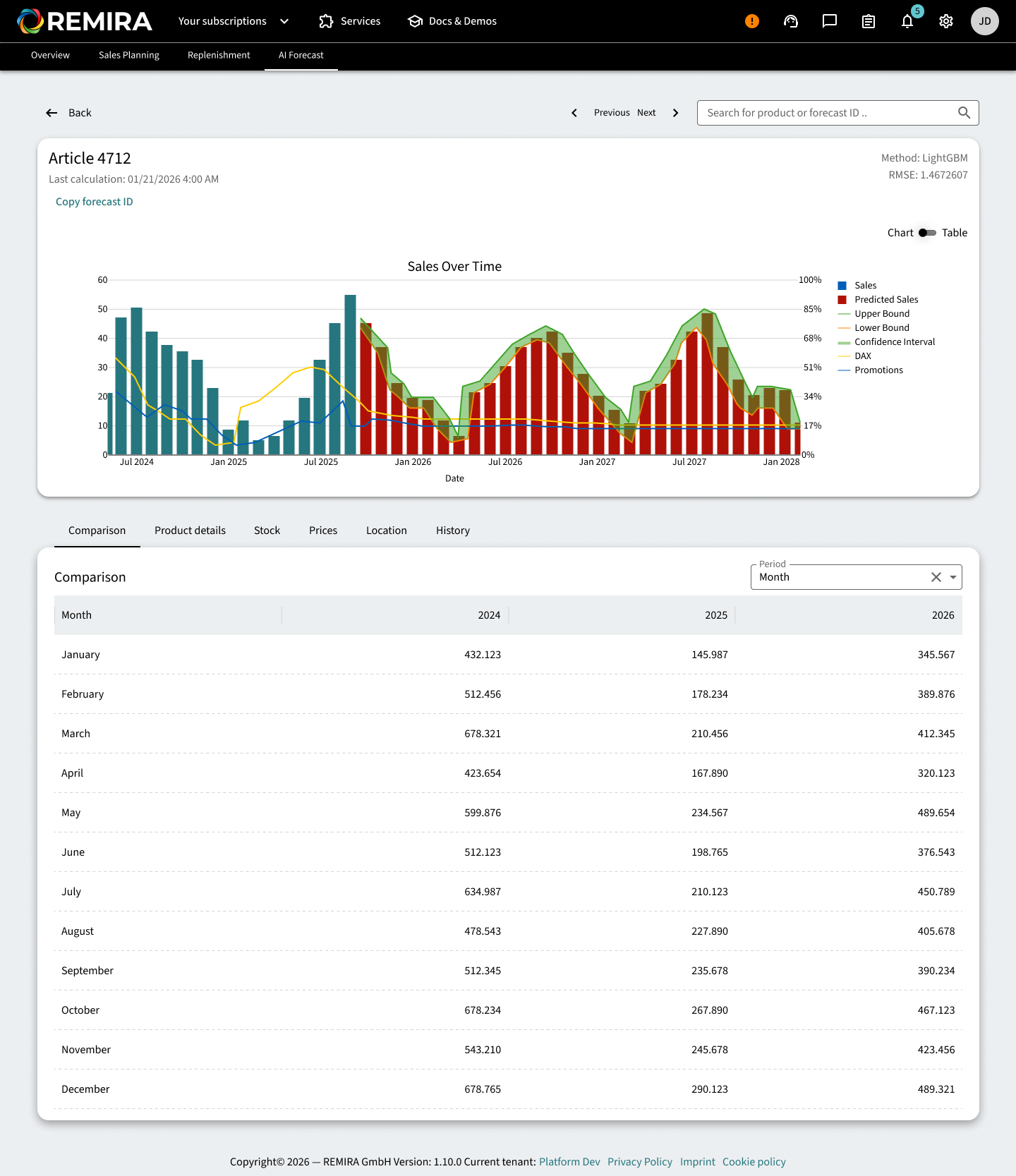 Im September 2025 hat sich CONACORD dazu entschieden, ausgewählte Services der REMIRA PLATFORM zu nutzen. Die REMIRA PLATFORM ist ein zentraler Hub zur Steuerung aller Supply-Chain- und Omnichannel-Prozesse mit neuster Technologie und höchsten Datenschutzstandards. Kunden können über die Plattform einfach und schnell Zusatzfeatures dazubuchen und auf Services zugreifen. CONACORD gehört zu einem der ersten Bestandskunden, die sich für den Umstieg von der On-Premise-Lösung in Richtung Cloud entschieden haben. Das Unternehmen nutzt zunächst weiterhin den lokalen Server für den Bereich Bestandsmanagement, der intelligente AI-Forecast-Service wird bereits von der REMIRA PLATFORM bezogen. Neben den jahrelang bewährten Algorithmen kommen damit die neuen KI-Funktionen hinzu, um Prognosen weiter zu präzisieren und eine noch höhere Prozessautomatisierung zu erreichen.