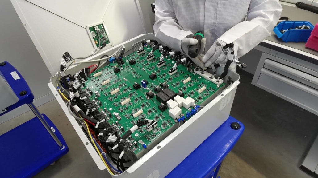 SAX Power Batteriespeicher aus Erbach bei Ulm läuten mit einem Steuerungssystem, das direkt 230 Volt Wechselstrom liefert, eine neue Ära ein. Die intelligente Multi-Level-Technologie wandelt die Gleichspannung der Lithium-Eisenphosphat-Batteriezellen direkt in Wechselspannung um. Damit entfällt die aufwendige Installation eines Hybrid-Wechselrichters, der bei allen bisherigen Heimspeichern zwischen Batterie und Hausstromnetz notwendig ist. Die für die Ankopplung ans Netz benötigte Wechselspannung wird durch stufenweise Akkumulation der Zellspannungen zu einer Sinusform realisiert, weshalb ein batterieseitiger Inverter überflüssig ist.