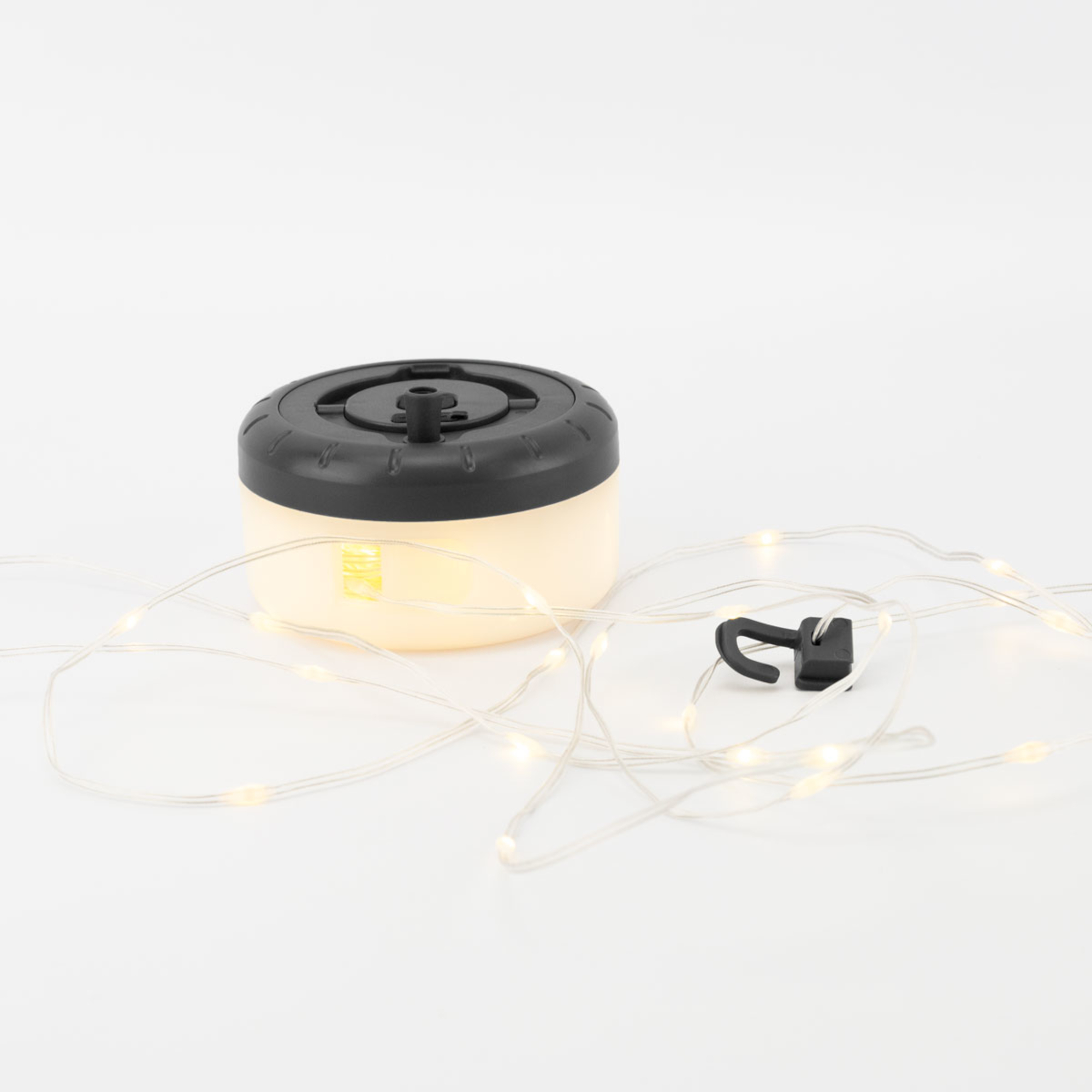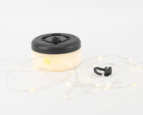 Das kompakte, aufrollbare Design spart Platz im Gepäck und macht die Lichterkette zum handlichen Begleiter. Mit ihrem spritzwassergeschützten Gehäuse (IP45) lässt sie sich einfach mit integriertem Haken überall aufhängen.