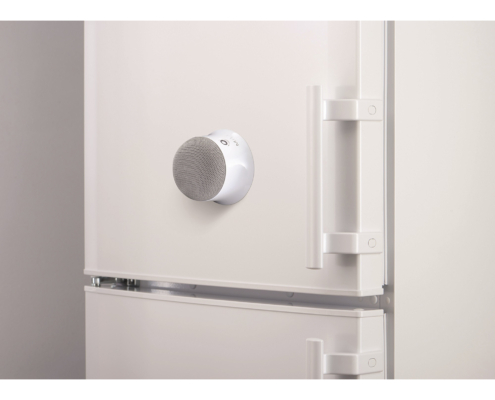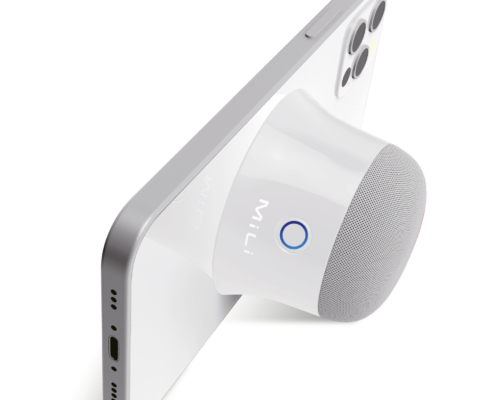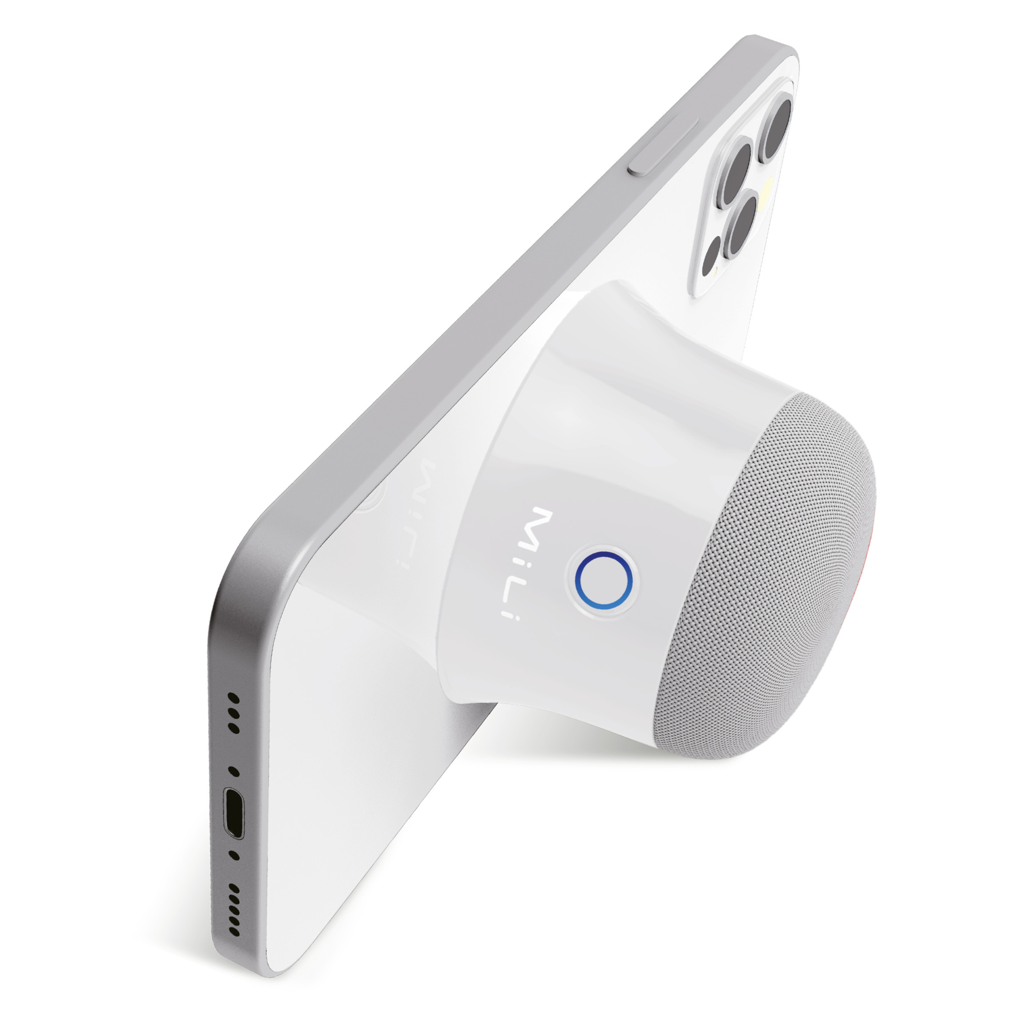 Der Mag-SoundMate ist ein kompakter Bluetooth-Lautsprecher, der speziell für den mobilen Einsatz entwickelt wurde. Dank integrierter Magnetfunktion haftet das Gerät direkt an MagSafe-kompatiblen Smartphones oder anderen magnetischen Oberflächen und sorgt so beim Camping oder auf Reisen für flexiblen Sound. Wird er an das Smartphone gehaftet, kann der Lautsprecher gleichzeitig als Halter für das Gerät verwendet werden.