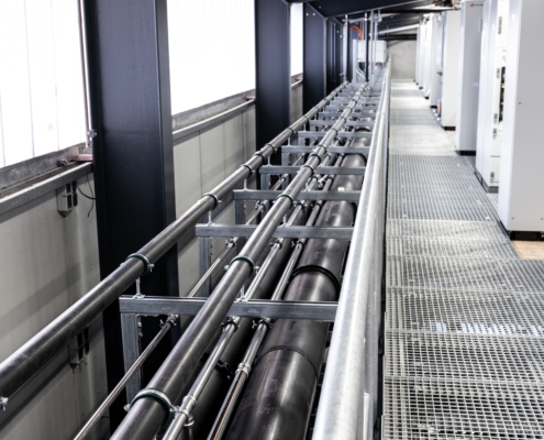 DownloadVersorgungsleitungen von der Kältetechnikanlage (links im Container) zum Voltavision Labor Riemke III