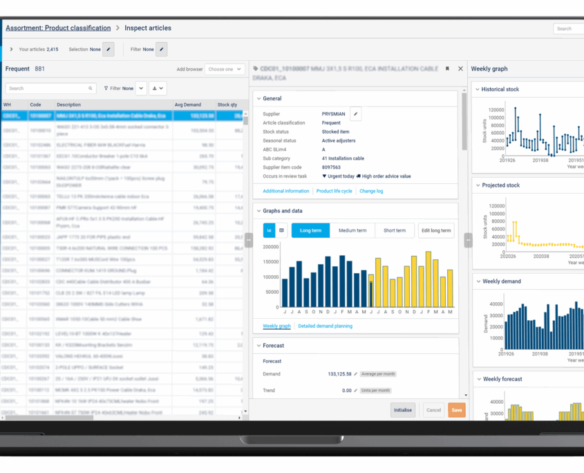 Des Weiteren unterstützt die Software durch die integrierte Produktportfolio-Planung – als Bestandteil des S&OP-Moduls – das strukturierte Management von Produkteinführungen und -ausläufen. Auf Basis der Lebenszyklusanalyse werden Phase-In und Phase-Out von Vorgänger- und Nachfolgemodellen gezielt auf die Bestandssteuerung abgestimmt. So lässt sich frühzeitig erkennen, wann ein Delisting sinnvoll ist, um Altbestände zu vermeiden und die Verfügbarkeit neuer Produkte zu sichern. Denn insbesondere für Unternehmen mit einem sehr breiten und kleinteiligen Sortiment ist es nahezu unmöglich, die Performance jedes einzelnen Artikels manuell im Blick zu behalten. Daher bietet die Automatisierung dieser Prozesse durch eine Software wie Slim4 eine deutliche Erleichterung und sorgt für wertvolle Zeitersparnis.
